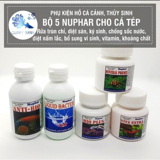 Bộ sản phẩm Nuphar - Bí Quyết Giúp Cá Khỏe - Anti bio - Liquid Bacter - Mineral - Vita Extra - Bio Plus - GuppyXanh