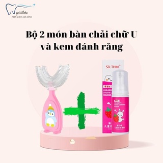 Combo 2 món bàn chải chữ U và kem đánh răng tạo bọt hương vị trái cây cho bé có thể nuốt được cho bé từ 2 đến 12 tuổi