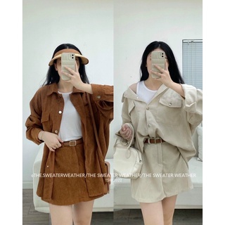 Set jum chất thun gân phối dây khóa kéo sau lưng mix viền trắng kèm khoác sơ mi siêu xinh