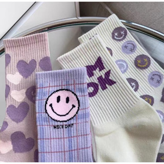 Vớ Tất Mặt Cười tím cao cổ phong cách Hàn Quốc siêu dễ thương và xinh xắn.