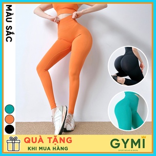 Quần tập gym yoga nữ chun mông GYMI QD50 dáng legging thể thao cạp cao chất dệt kim co giãn nâng mông eo thon