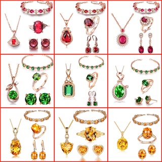 (Hàng Có Sẵn) Set Vòng cổ + Bông Tai + Nhẫn Đính Pha Lê Hồng Cổ Điển