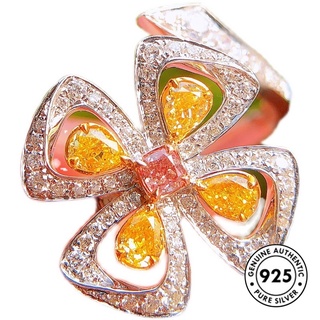 Nhẫn mạ bạc S925 hình cỏ bốn lá đính đá thời trang thanh lịch