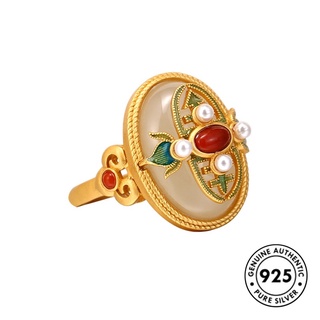 Nhẫn mạ bạc S925 đính ngọc bích phong cách retro thời trang S925