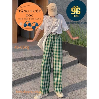 Quần Ống Rộng Quần Kẻ Caro MÀU XANH LÁ Phong Cách Hàn Quốc Freesize 40-65kg