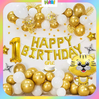 Set Bóng Bay Trang Trí Sinh Nhật Thôi Nôi Cho Bé Tuổi Hổ Tone Màu Vàng, Xanh, Hồng, Đỏ Tặng Kèm Bơm Băng Dính HO