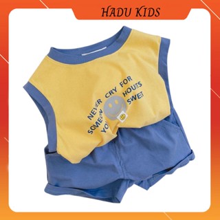 Quần áo bé trai, đồ bộ bé trai bé gái ba lỗ sát nách in chữ Never cry - HADU KIDS 7 - 28 kg