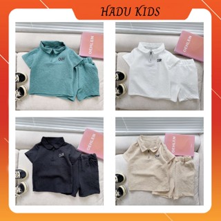 Bộ cộc tay cho bé, bộ quần áo cộc tay cho bé trai bé gái OUR đũi xốp mềm mát cổ bẻ có khóa - HADU KIDS 9 - 27 kg