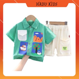 Bộ cộc tay cho bé trai bé gái, đồ bộ bé trai in hình cổ trang chất đũi cao cấp - HADU KIDS 7 - 28 kg