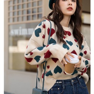 Hàng Sẵn_ Áo len dệt kim Love jacquard dáng rộng Hadu shop