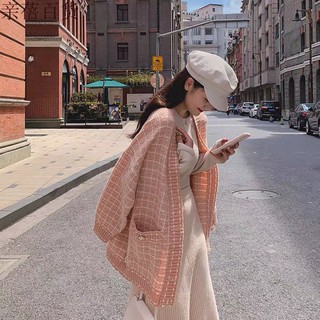 Hàng Sẵn_Áo khoác len dệt kim sọc ca rô áo len phong cách retro Hồng Kong