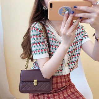 Hàng Sẵn_ Áo len dệt kim dáng ngắn thêu hoa nhỏ retro