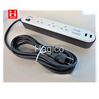 Ổ cắm điện có USB Panasonic 3 lỗ cắm 3m + 2 cổng sạc nhanh WCHG243322WG 2500W tặng phích nối