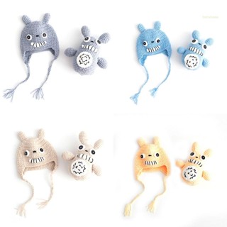 Bộ 2 Mũ Beanie Dệt Kim Đính Tai Thú Dễ Thương Dùng Làm Phụ Kiện Chụp Ảnh Cho Bé Sơ Sinh