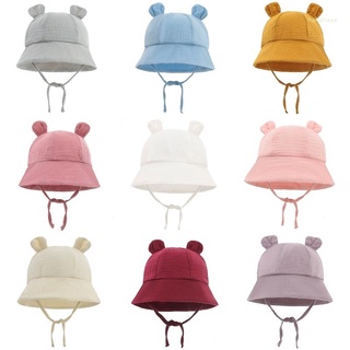 Mũ beanie cotton màu trơn đính tai gấu dễ thương cho bé 0-6 tháng tuổi