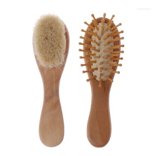 [Hàng mới về] Set 2 dụng cụ gồm bàn chải lông mềm và lược chải massage bằng gỗ cho trẻ sơ sinh