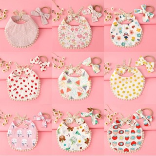 Bộ 2 Yếm Ăn Họa Tiết Tam Giác Đính Nơ Xinh Xắn Cho Bé Gái