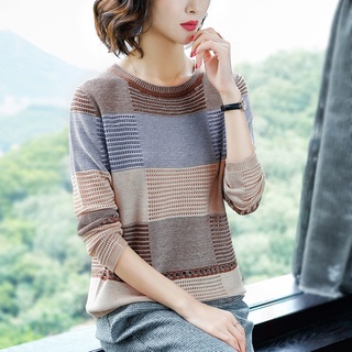 {Ảnh Thật} Áo len nữ from rộng phối màu trẻ trung thời trang phong cách Hàn Quốc