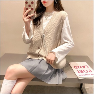 Áo len gile oversize dáng rộng, cổ v đóng cúc phong cách hàn quốc - Gv05