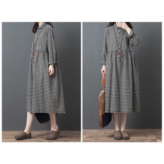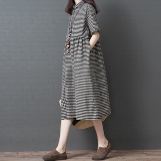 Váy đầm nữ dáng Babydoll, Đầm Midi Cổ Sơ Mi Tay Ngắn Kẻ Caro Chất đũi Da158
