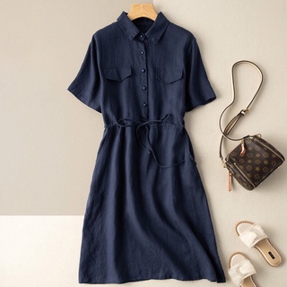 Đầm suông nữ dáng babydoll form rộng đơn giản vải đũi mát thời trang phong cách Nhật Bản
