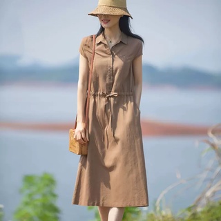 {Hàng Mới Về} Váy Sơ Mi Nữ Gài Cúc Chiết Eo form rộng dáng dài qua gối chất liệu đũi mềm mát Da194