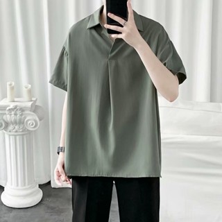 Áo Sơ Mi Polo Tay Ngắn Vải Lụa Lạnh Mỏng Màu Trơn Kiểu Nhật Bản Thời Trang Mùa Hè Cho Nam