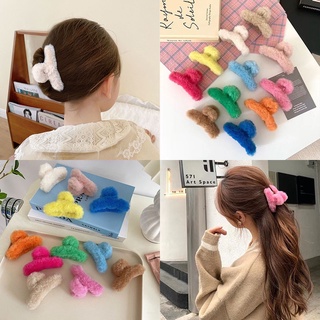 Kẹp Tóc Lông Cừu Màu Trơn Dễ Thương Phong Cách Hàn Quốc
