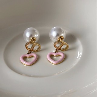 Bông Tai Bạc Đính Ngọc Trai Họa Tiết Chữ Love Màu Hồng Nữ Tính