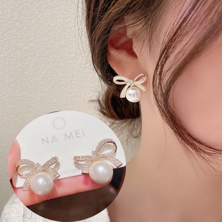 Bông tai mạ bạc 925 hình nơ đính ngọc trai nhân tạo phong cách hàn quốc