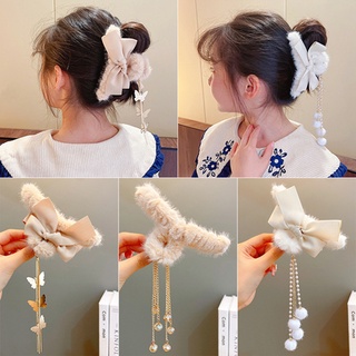 Kẹp tóc cá mập phối lông cỡ lớn phong cách Hàn Quốc 2022 cho nữ