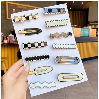 Kẹp tóc mỏ vịt màu trắng đen kiểu retro đơn giản cho nữ