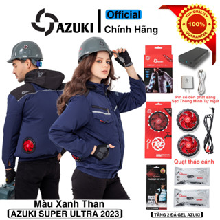 Áo Quạt Gió Điều Hoà Nhật Bản AZUKI SUPER ULTRA 2023 Chất Lượng Quạt 13V Siêu Mạnh Pin 24000-26000mah Có Đèn Chiếu Sáng