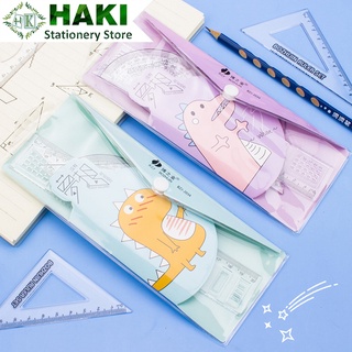 Thước kẻ cute HAKI bộ 4 món có túi đựng họa tiết hoạt hình dễ thương cho học sinh TK03