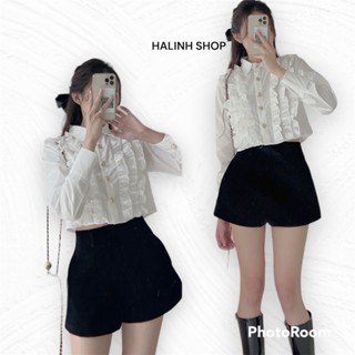 Áo Sơ Mi Nữ Dáng Lửng Bèo Xếp Ly - Halinh Shop - Áo Sơ Mi dáng Lửng Dài Tay Cúc Đồng Bèo Xếp Ly Tiểu Thư Hàn Quốc S M