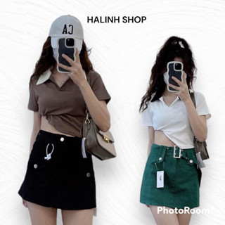 Áo Babytee Cổ Sơ Mi Phối Màu - Halinh Shop - Áo Croptop Dáng Lửng Vạt Lượn Phối Cổ Chất Cotton Tàu Hàng Đẹp