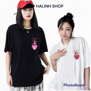 Áo Phông Nữ Thêu Tim Dây Nổi Hót Màu Đen Trắng -Halinh Shop- Áo Phông Cotton Nữ Form Rộng