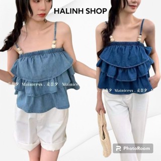 Áo 2 Dây Bò Croptop Nữ Bèo Nhún 2 Tầng Vải Jean Quảng Châu -Halinh Shop - Áo Croptop Bèo Nhún Tầng Jean Size S M