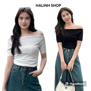 Áo Trễ Vai Cổ Thuyền Chất Tăm Dáng Croptop - Halinh Shop - Áo Croptop Trễ Vai Hàng Qc Loại 1