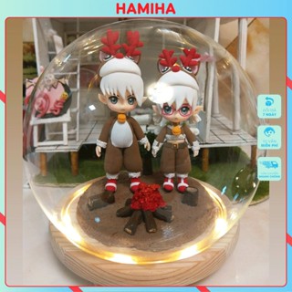 Chụp kính thủy tinh đế gỗ có Đèn Led trang trí hình cầu , Quả cầu thủy tính trong suốt có đế gỗ trang trí nhà cửa HAMIHA