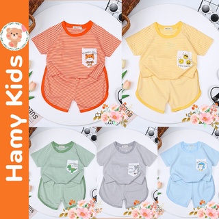 Bộ Tay Ngắn Raplan Sọc Dệt Minky Mom Chính Hãng Thun Lạnh Quần Vát Hình Chó Con Gấu Con Bé 0-5 Tuổi Dưới 20kg - Hamykids