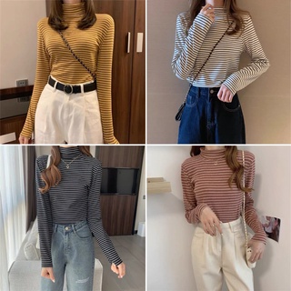 Áo thun nữ kẻ sọc cổ lọ tay dài ôm body phong cách hàn quốc kiểu đẹp mới 2022