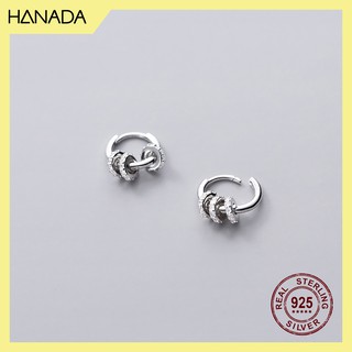 Bông Tai Bạc 925 Hanada N1234.E.2.B.360.0622 Khoen Tròn 3 Đá Tròn