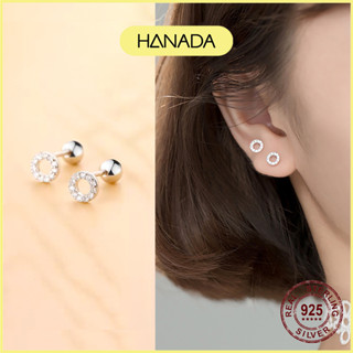 Bông Tai Bạc 925 Hanada Tròn Đá Chui Bi Vặn Đơn Giản Nam Nữ 1099 B13