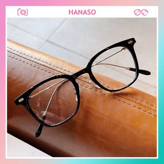 Kính cận nam nữ thời trang cao cấp gọng tròn mắt mèo không độ chống ánh sáng xanh phong cách Hàn Quốc đẹp HANASO 048