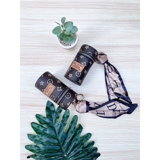 Móc khoá thời trang dạng ống kèm khăn lụa sang chảnh đựng vừa cây son cỡ ngắn