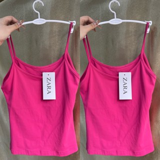 Áo Zara Áo hai dây hồng basic dáng ngắn Zara xuất