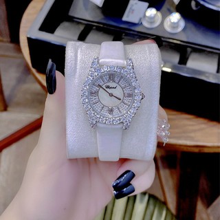 Đồng hồ nữ Chopard dây da mặt đính đá kim cương sang trọng đeo cực sáng tay và nổi bật - kèm ảnh thật