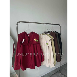 Áo sơ mi cổ bèo thêu hoa nổi cực hot mùa hè