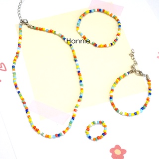 Set vòng cổ - vòng tay - nhẫn hạt cườm nhựa handmade đeo tay nữ (Xanh lá/Xanh dương/Tím/Cam/Hồng/Mix)